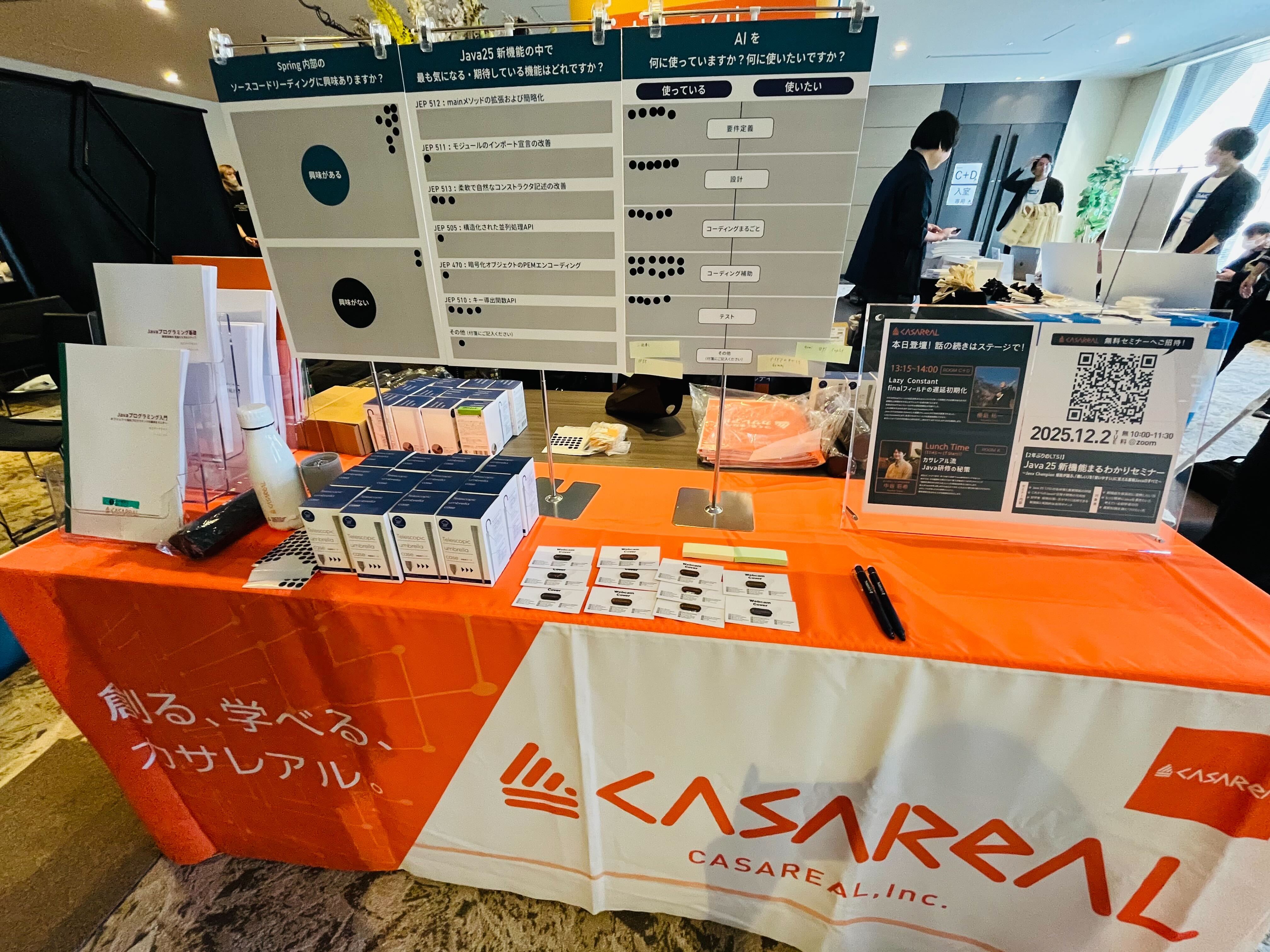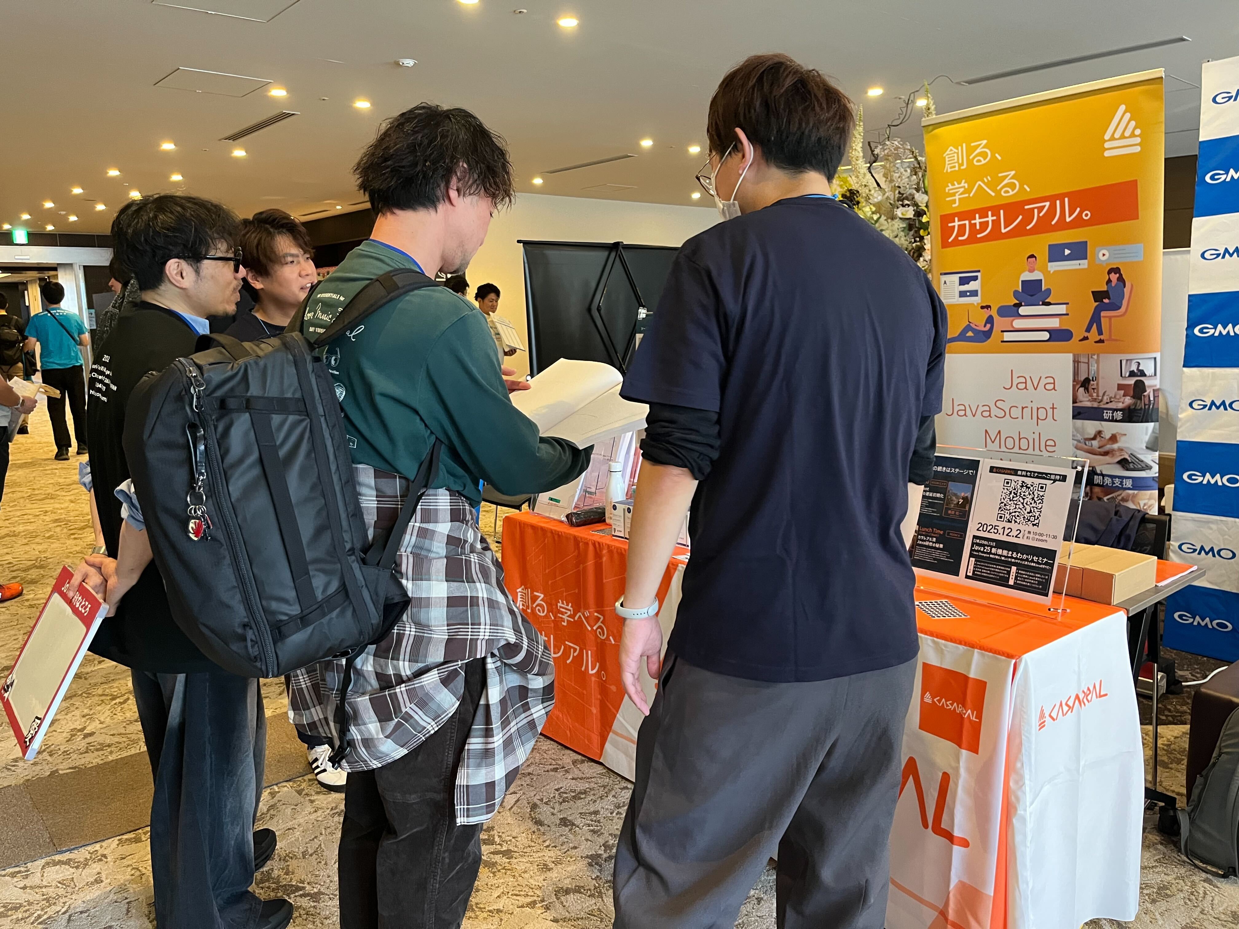 ブースには当社をご存知の方や、Java / Spring 関連研修を過去にご受講いただいた方も多く見られ、