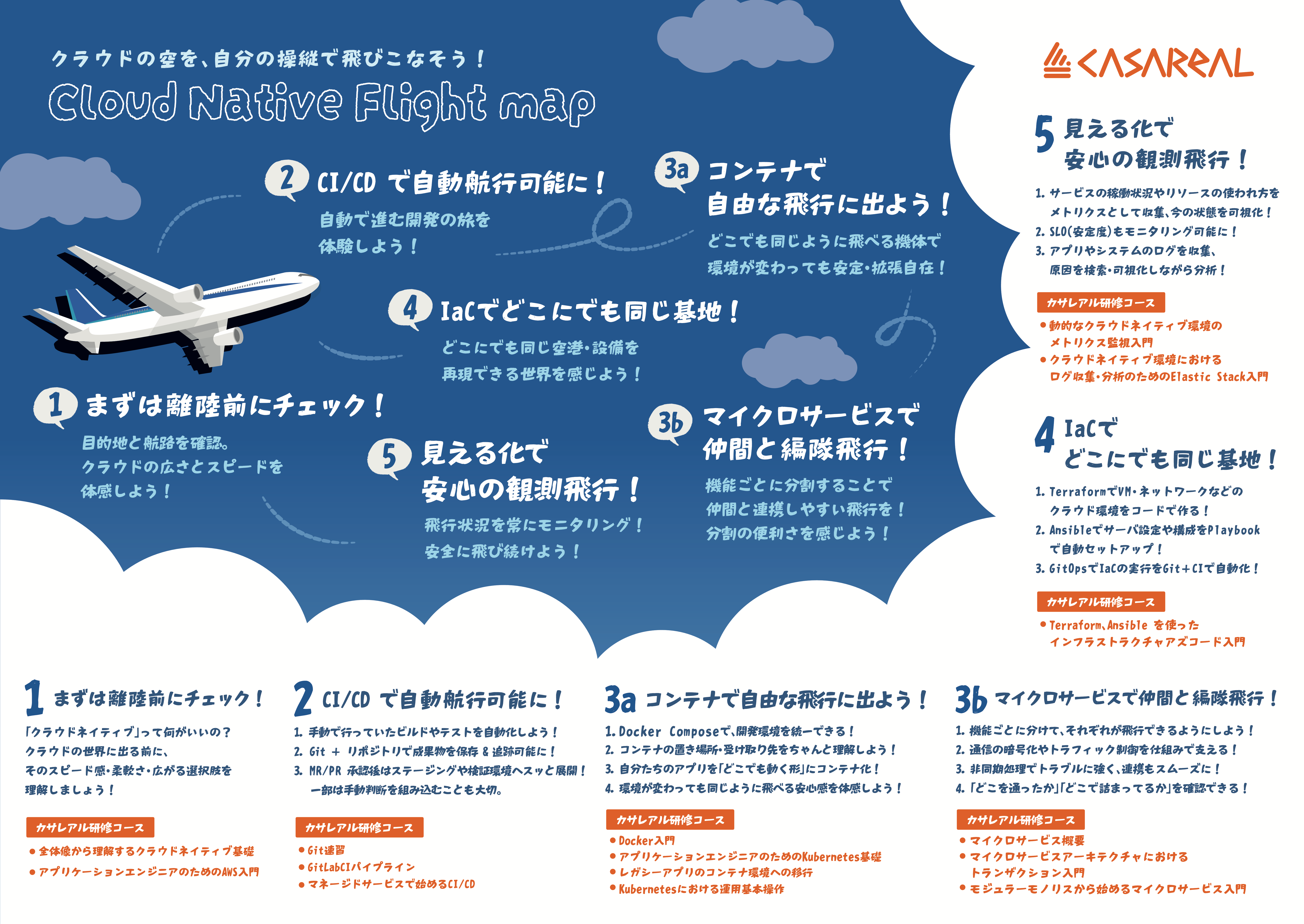 ブースでは、クラウドネイティブ導入~活用のフローをフライトマップで表現したパネルを展示。